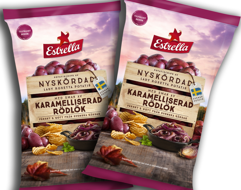 Karamelliserad Rödlök var en favorit från Estrella 2018 och nu är den äntligen tillbaka! Grovräfflade chips med mild sötma och lätt syra.