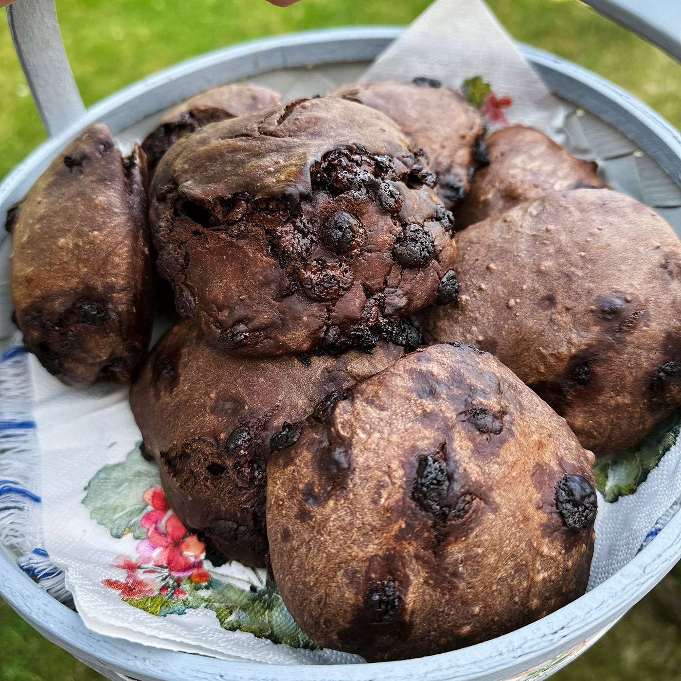 3. Vispa ner mjölk och rapsolja med hjälp av en ballongvisp. När din smet är slät och fin utan klumpar fördelar du den i formarna och gräddar i 20–25 minuter. Den ska vara torr i mitten. Ta ut och låt svalna.