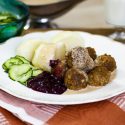 Skala potatisen och skär den i mindre bitar. Koka mjuk i lättsaltat vatten.