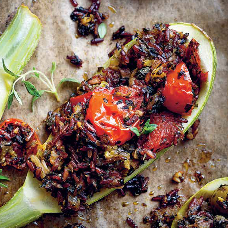 7. Fyll squashen med grönsaksblandningen och baka i mitten av ugnen i 20-30 minuter, tills allt har fått n färg och squashen är mjuk.