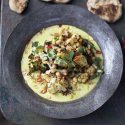 2. Häll ner ris och tofu i en matberedare och mixa ihop till en fin färs. Krydda med lökpulver, rosmarin, salt och peppar.