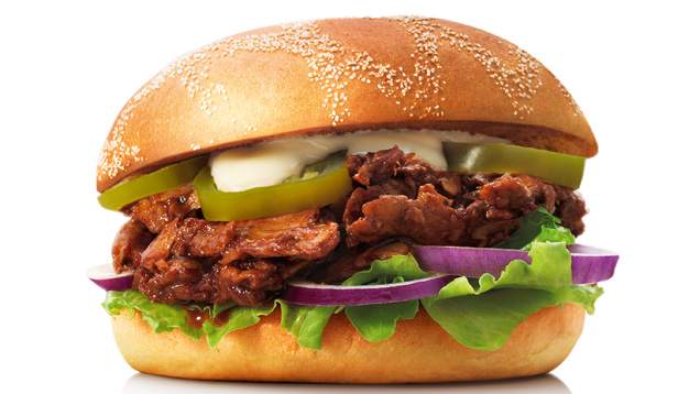 Burgaren som frontar hela lanseringen är BBQ Sandwich (se bild ovan), som dessutom är helt vegansk. Den är fylld med BBQ Pulled Oumph!, Friscobröd, rödlök, isbergssallad, jalapeños och äggfri majonnäs. Grym konsistens på Oumphen, som det brukar, med en riktigt kryddig marinad. Kul att de inte körde på Oumphs egen sås, utan tog fram sin egen med lite mer bett i. Något söt, men det passar väldigt bra med den rejäla hettan i jalapenon. Kul att man äntligen vågar krydda upp en vegoburgare ordentligt. Majonnäsen, också speciellt framtagen, har en härligt rund smak och inte den där starka syran som äggfria majonnäser kan ha ibland. Den här var en stor favorit även hos övriga smaktestare och vår absoluta favorit. Det här är även den mest klimatsmarta burgaren på menyn.