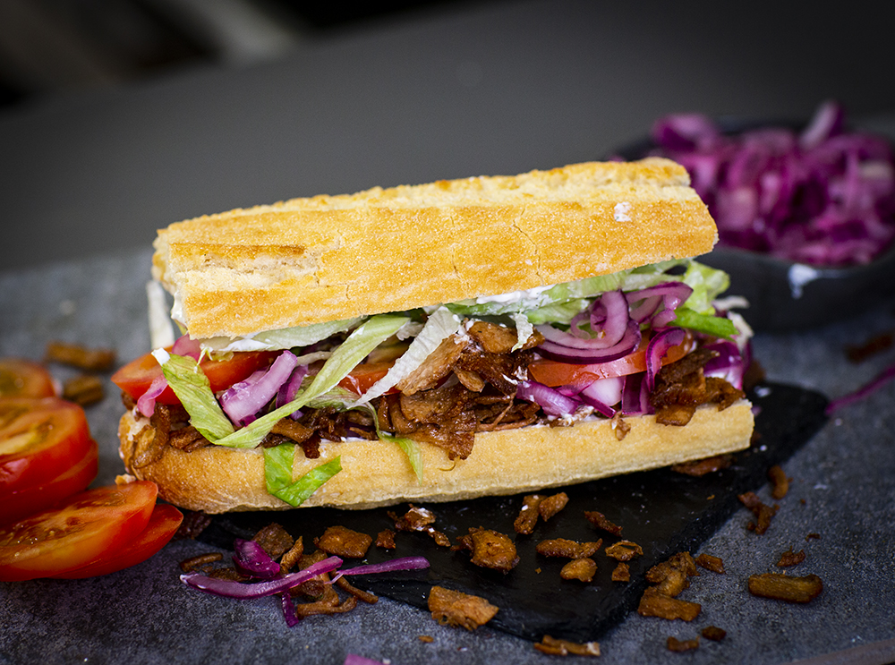 - Rosta baguetten. Bred ranchdressing på båda sidor och fyll sedan med generöst med Oumph Smoky Bits, snabbpickla rödlök, tomat och sallad. Ät genast.