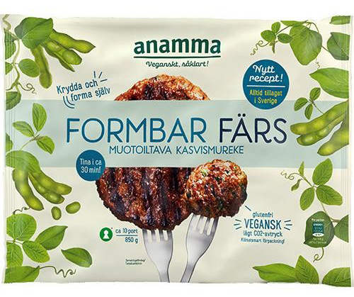 Anamma formbar färs hittar du i frysdisken och används precis som vanlig färs. Tina den genom att sprida ut den på en bricka och låt stå i 30 minuter. Värmer du den i micron är risken stor att färsen blir för varm och då håller den inte ihop.