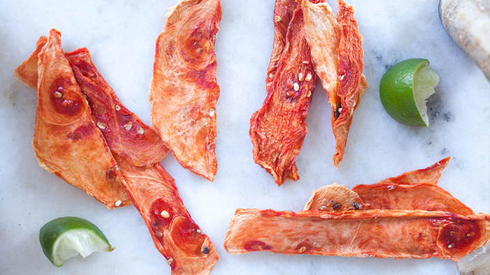 Det är bland annat hälsokostmärket Sakara som säljer just jerky på vattenmelon för de som vill stilla sitt sug. Det är i princip bara torkad vattenmelon och vi vill mer än gärna smaka.