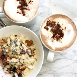 En vackert stilren lokal där du kan välja antingen en söt eller matig variant på havregrynsgröt. De har även varm choklad med vegansk marshmallows och bakverk. Gott, absolut! Sockerchock till lunch? Japp!