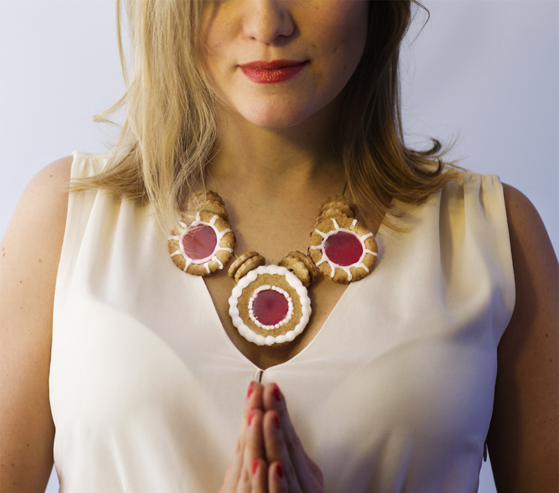 5. Till ett halsband kan du göra lite som du känner. Små rundlar som “pärlor” runt om och större rundlar med eller utan hål för “karamellfönster” som juveler eller hängen. Stansa ut med kakmått eller skär för band.