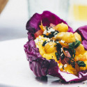 4. Servera tillsammans med kokosgrädde smaksatt med citron.