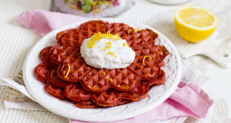 Vi kallar de här för smoothievåfflor eftersom de i princip är en matig, ruskigt god och vackert rosa smoothie som vi sedan har gräddat till frasiga våfflor. För att göra de extra matiga har vi mixat ner Zetas 5 gryner. Mums!