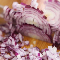 2. Skär rotsaker och grönsaker i bitar.