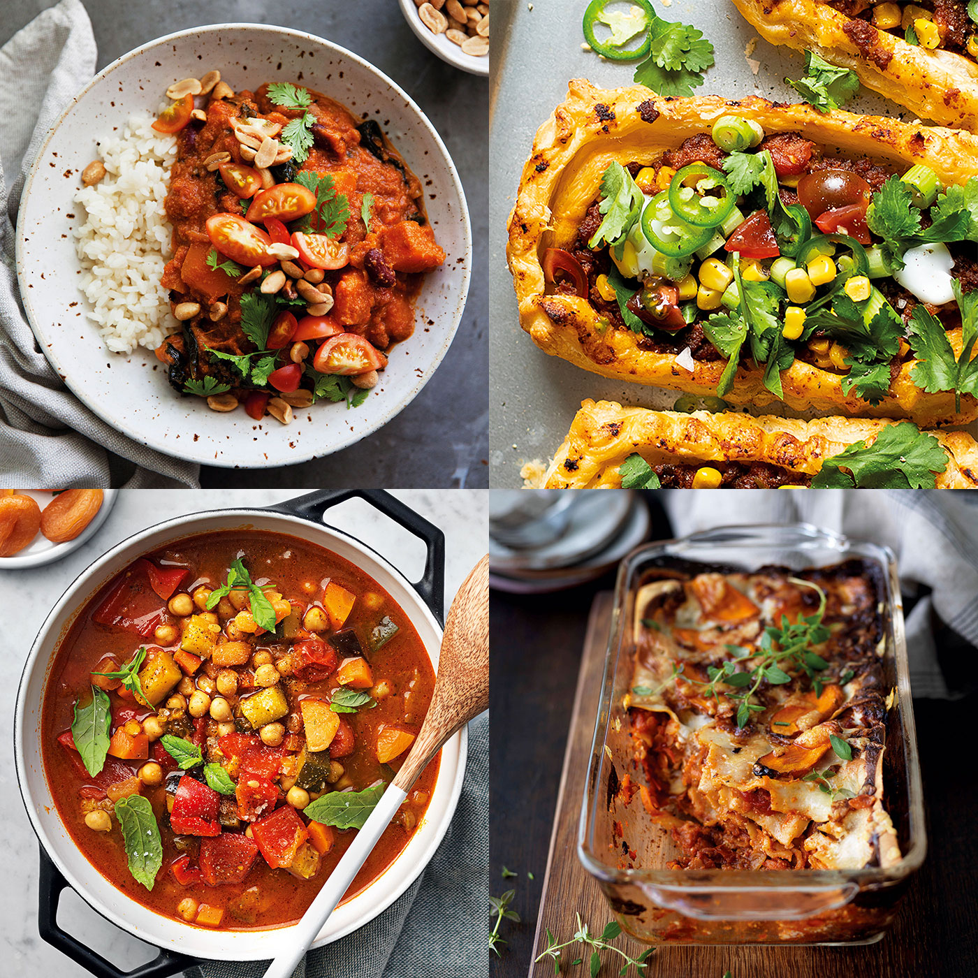 Måndag: Vegetarisk jordnötsgryta med pumpa Tisdag: Vegetarisk ärtbowl med senap Onsdag: Linslasagne med BBQ-feeling Torsdag: Vegetarisk linssoppa med jordnötssmör Fredag: Vegetarisk biff och bea! Lördag: Smördegspajer med tacofyllning Söndag: Marockansk vegetarisk tagine med saffran Sött: Äppelpaj med smördeg och mandelkräm
