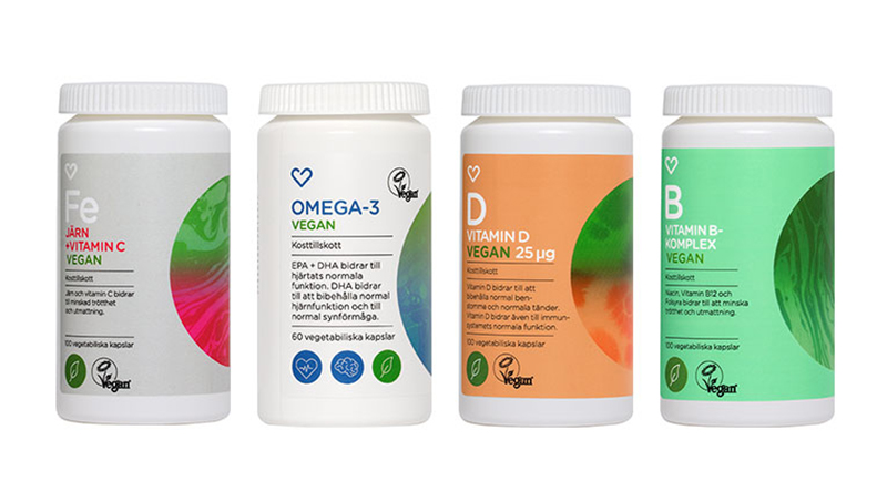 Vitaminerna D, B och Järn har kapslar tillverkade av cellulosa och kan även öppnas och ströas ut över mat och dryck för de som har svårt att svälja tabletter eller kapslar. Kosttillskotten är lämpliga för vuxna och barn över 12 år, och passar även ammande och gravida. Kosttillskotten innehåller inga allergener.