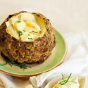 6. Lägg ett lager filodeg på en arbets- yta och pensla med smält smör. Lägg ytterligare ett deglager ovanpå, skär i 7 cm breda remsor och pensla med det smälta smöret. Lägg en sked med potatisröran i övre vänstra hörnet på varje remsa. Vik sedan så att det blir en triangel och fortsätt vik längs hela remsan så att fyllningen helt kapslas in. Fortsätt med resten av fyllningen och degen.