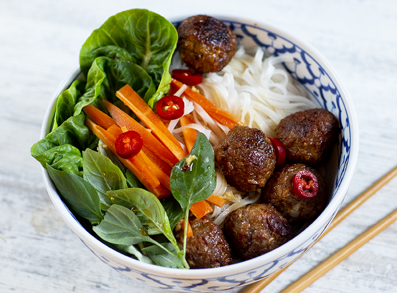 Jag älskar vietnamesisk mat för att de kombinerar sötma, med syra och färska örter. De använder mycket grönsaker, men också en hel del kött, men tack vare att det ändå är så mycket smak i grunden går det enkelt att göra recept veganska och vegetariska. Här har jag tagit klassiska vietnamesiska köttbullar men gjort de på formbar färs.